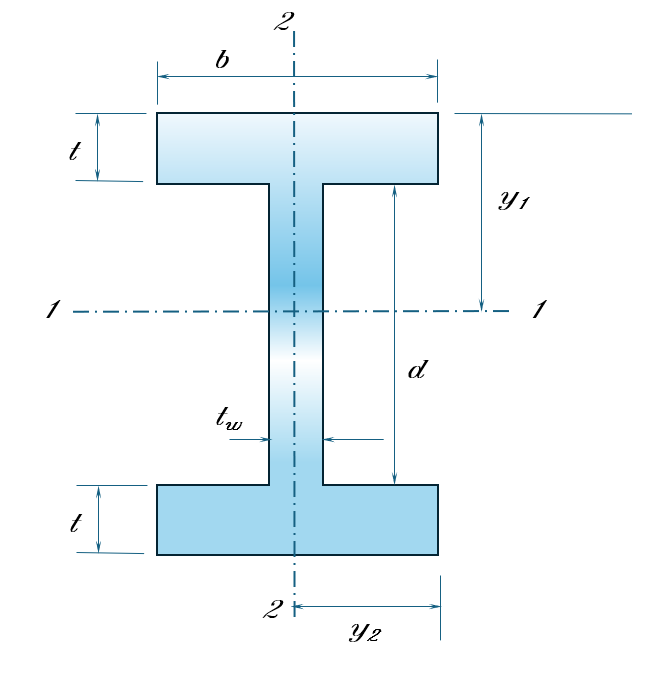 Worksheet to calculate the geometrical section properties of a simple I-beam.